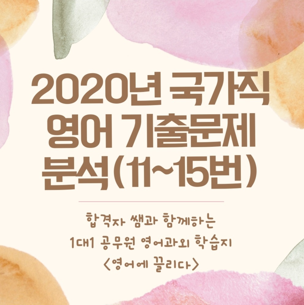 | [무료 공유] 2020년 국가직 9급(7월) 영어 기출문제 분석 (1~5번) (0) | 2022.02.26 |