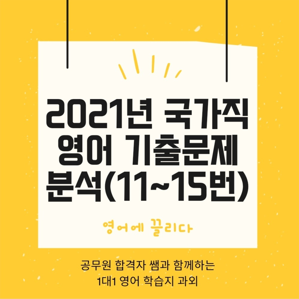 | 2021년 국가직 9급 영어 기출문제 분석 (16~20번) 및 기출영단어 무료 공유 (0) | 2022.02.21 |